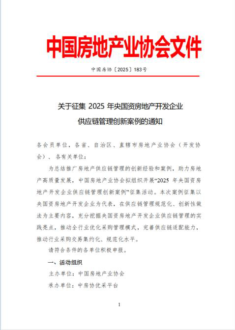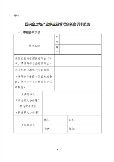 案例应包含内容、要素详见附件:《国央企房地产业供应链 管理创新案例申报表》。