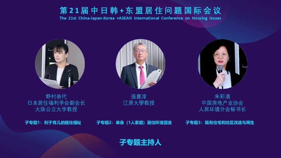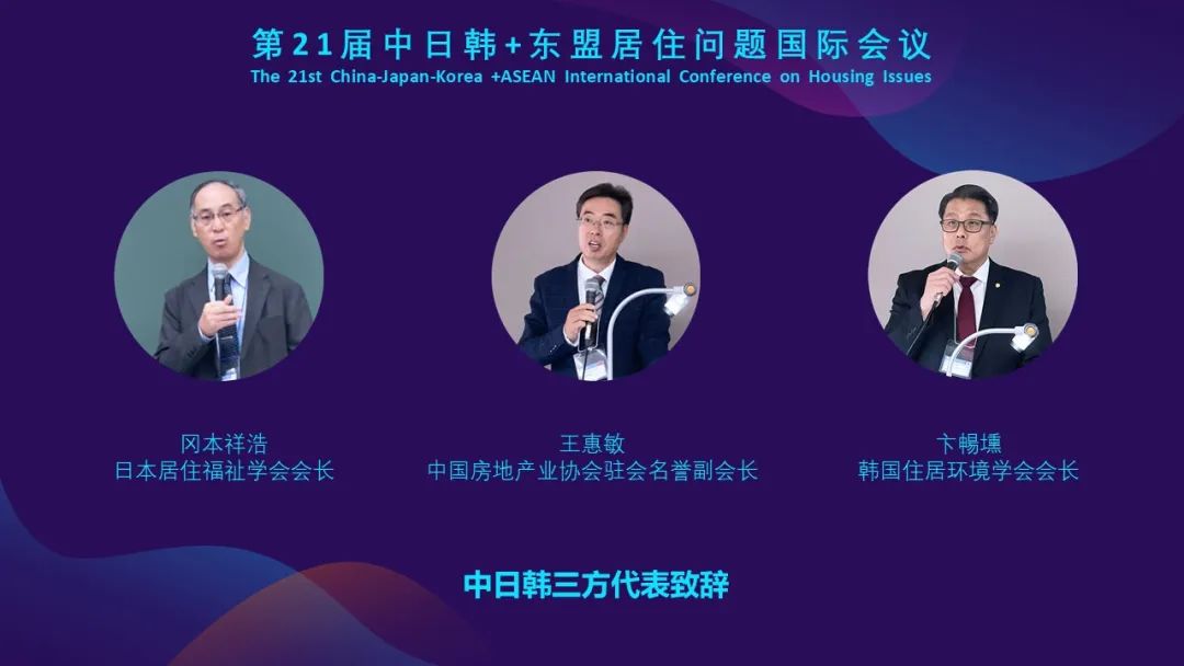 中国房地产业协会驻会名誉副会长王惠敏做开幕致辞,他表示中日韩居住问题国际会议作为区域间重要的国际学术和业务交流平台,历久弥新,不断焕发新的生机。这离不开三国同仁长期持续的共同努力。新的20年,面向可持续居住环境的未来,我们要继续加强并进一步扩大交流,增进互信和合作,共同为中日韩三国及东盟国家人民创造高质量发展的美好居住环境而努力!