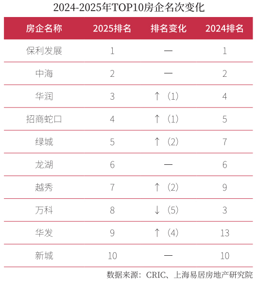 测评研究报告显示,2025房地产开发企业综合实力TOP500前三位由保利发展、中海、华润占据。其中,保利发展、中海分别保持第一、第二位,华润上升至第三位,招商蛇口、绿城、龙湖、越秀、万科、华发、新城分列第四至第十位。