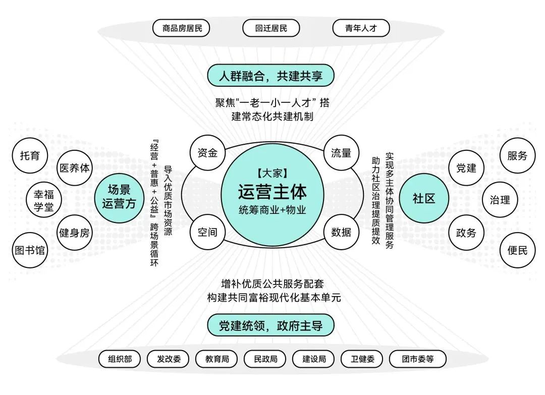 社区的生命力源于运营的可持续性基因。大家房产为确保运营的活力贯穿社区生命周期的始终,创新构建社区长效运营机制,以丽水灵山未来社区为实践样本,打造出以共建为核心,政企民商校等多方联动协同的“多元运营社区共同体”。这套具有可持续发展意义的“大家模式”,通过场景营造、数字治理等创新实践,实现社会效益与经济效益平衡,为政企合作型未来社区长效运营提供了宝贵经验,得到了市场、行业及政府端的高度认可。