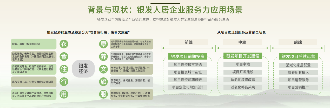 中国房地产业协会康养分会会长、易居中国董事局主席周忻正式发布《2025中国银发人居发展报告》,首次系统定义了"银发人居"概念:即以老年需求为核心,构建"住得安心、活得舒心、融得进去"的居住生态,带动十大关联产业协同发展。报告深入剖析了银发人居八大场景,并分别针对银发友好社区、可持续照料CCRC社区、银发综合体、银发公寓、市场型养老院、银发商业、银发经济产业园、银发旅居各场景,分析了其各自发展状况并提出相应建议。银发人居全方位覆盖老年人居住生活需求,为银发经济蓬勃发展勾勒出清晰的实践路径。